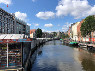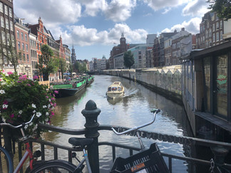Ils repartent l'après-midi dans la rue commerçante la plus active de la ville. Puis, ils passent devant la maison d'Anne Frank, un musée consacré à la jeune fille juive écrivaine de la Seconde Guerre mondiale, connue pour son journal intime. Ils arrivent à la gare, l'hypercentre de la ville. Ensuite, ils passent le gros canal en ferry qui relie la rive nord à la rive sud. Ils arrivent dans la zone portuaire, font un petit tour et reviennent dans le centre. Ils mangent une très bonne glace : dans un cornet gaufré le glacier superpose une boule au yaourt, de la chantilly puis à nouveau une boule au yaourt. Ils continuent leur visites et passent devant la bibliothèque qui était fermée. Avant de retourner chercher leurs vélos, ils vont sur la place royale. De nouveau sur la selle, ils s'arrêtent boire une bière artisanale et mangent dans un fast-food amélioré.