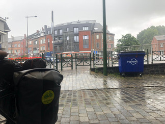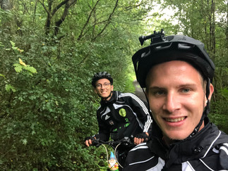 La journée commence avec une montée de 6,5 kms dans les Ardennes. Une fois arrivés au sommet, les garçons sont à l'altitude la plus haute du périple : 540 mètres. La descente malgré la pluie est tout de même sympathique, les jambes peuvent se reposer.